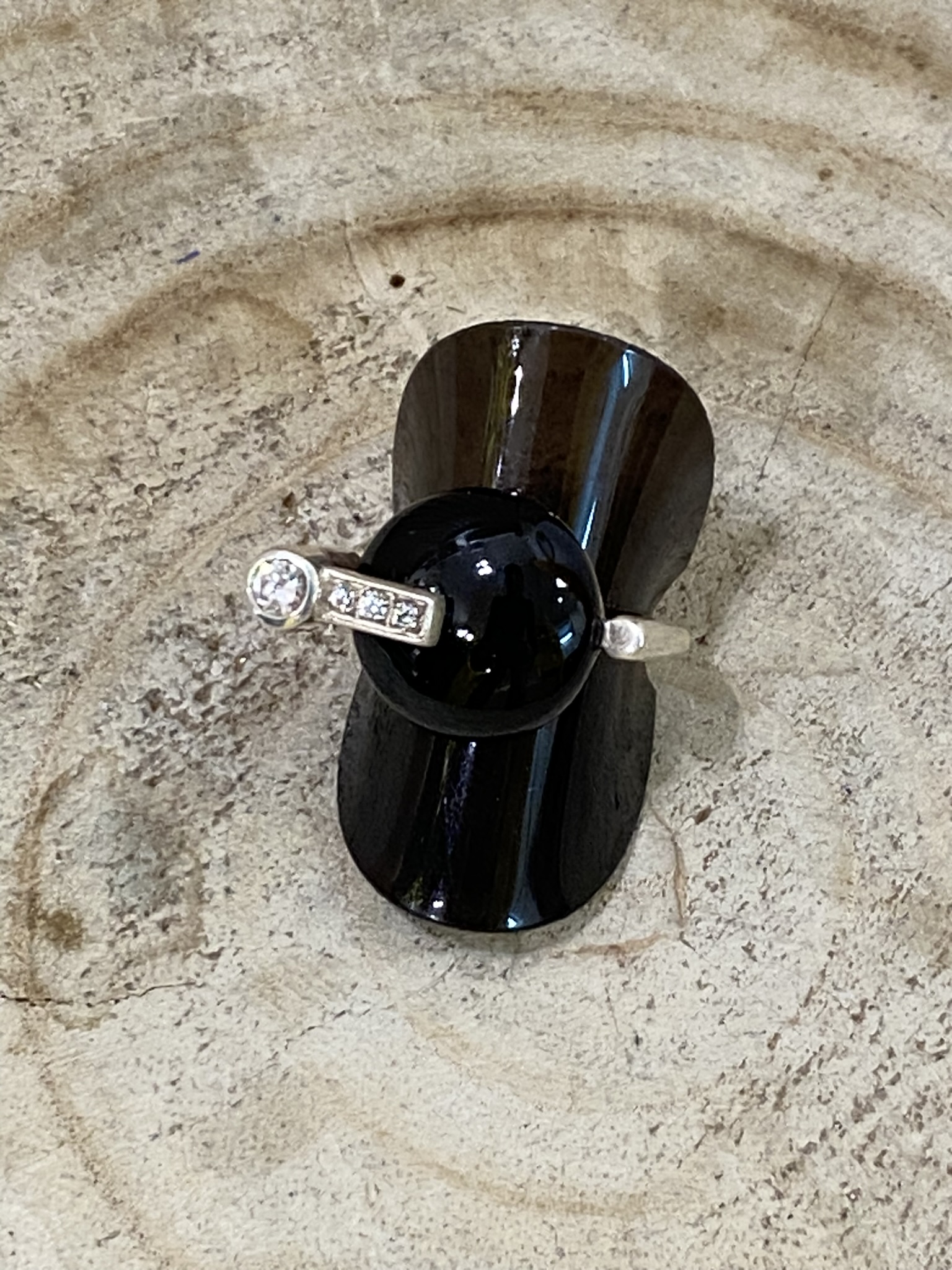 Bague Art Déco Joze sertie d’une agate noir et de zirconiums en argent – Joze Paris