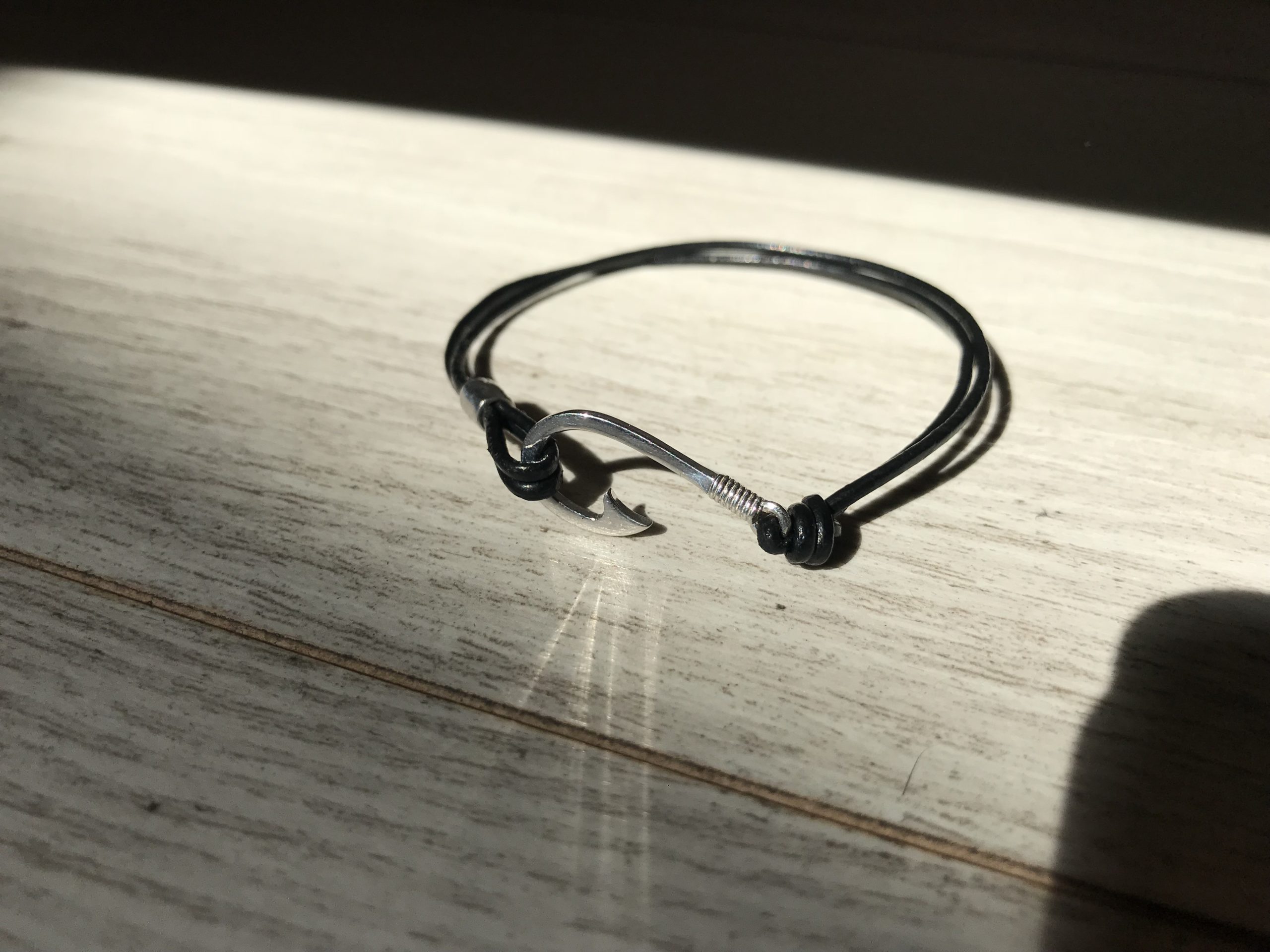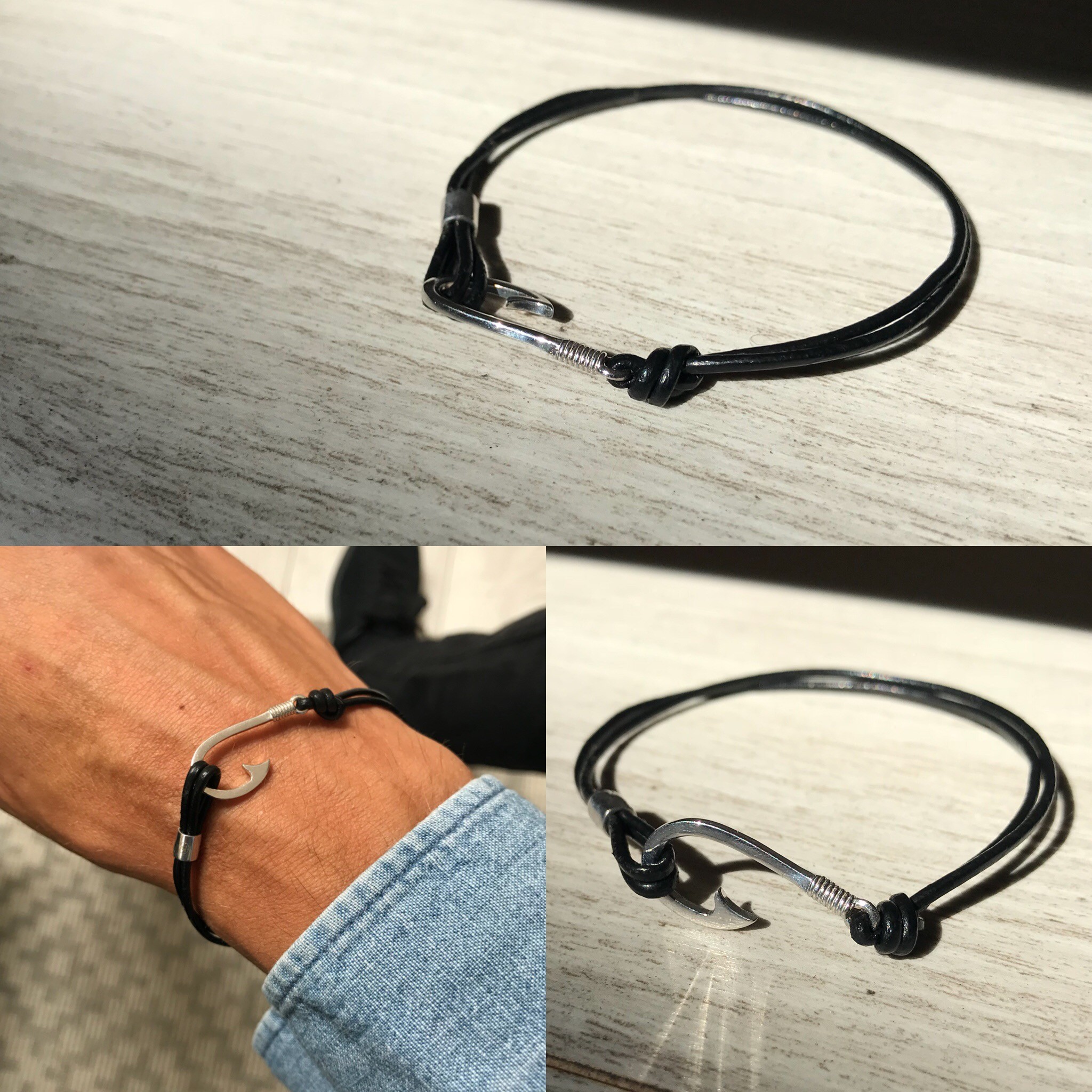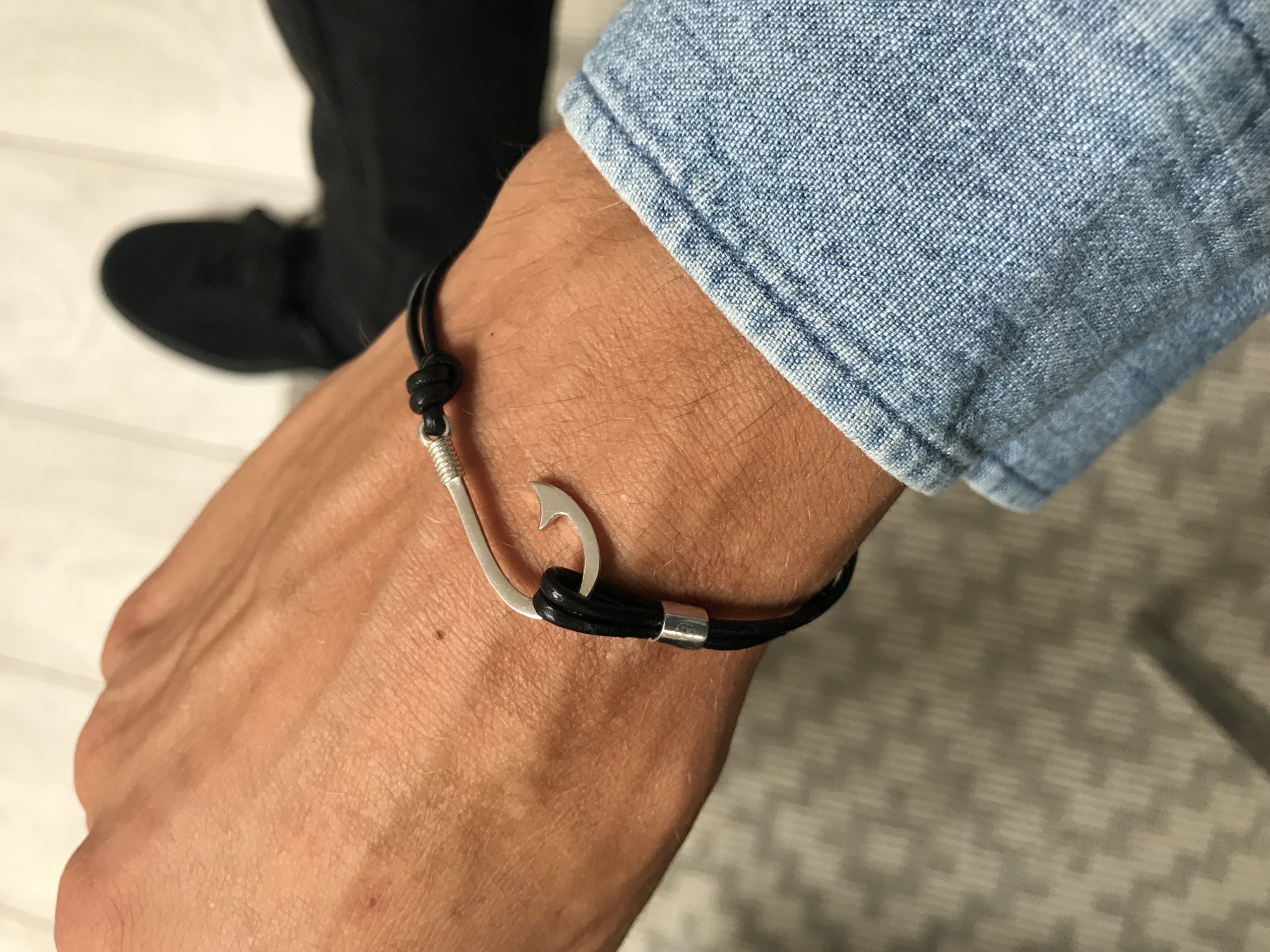 Bracelet Achor in silver with black leather