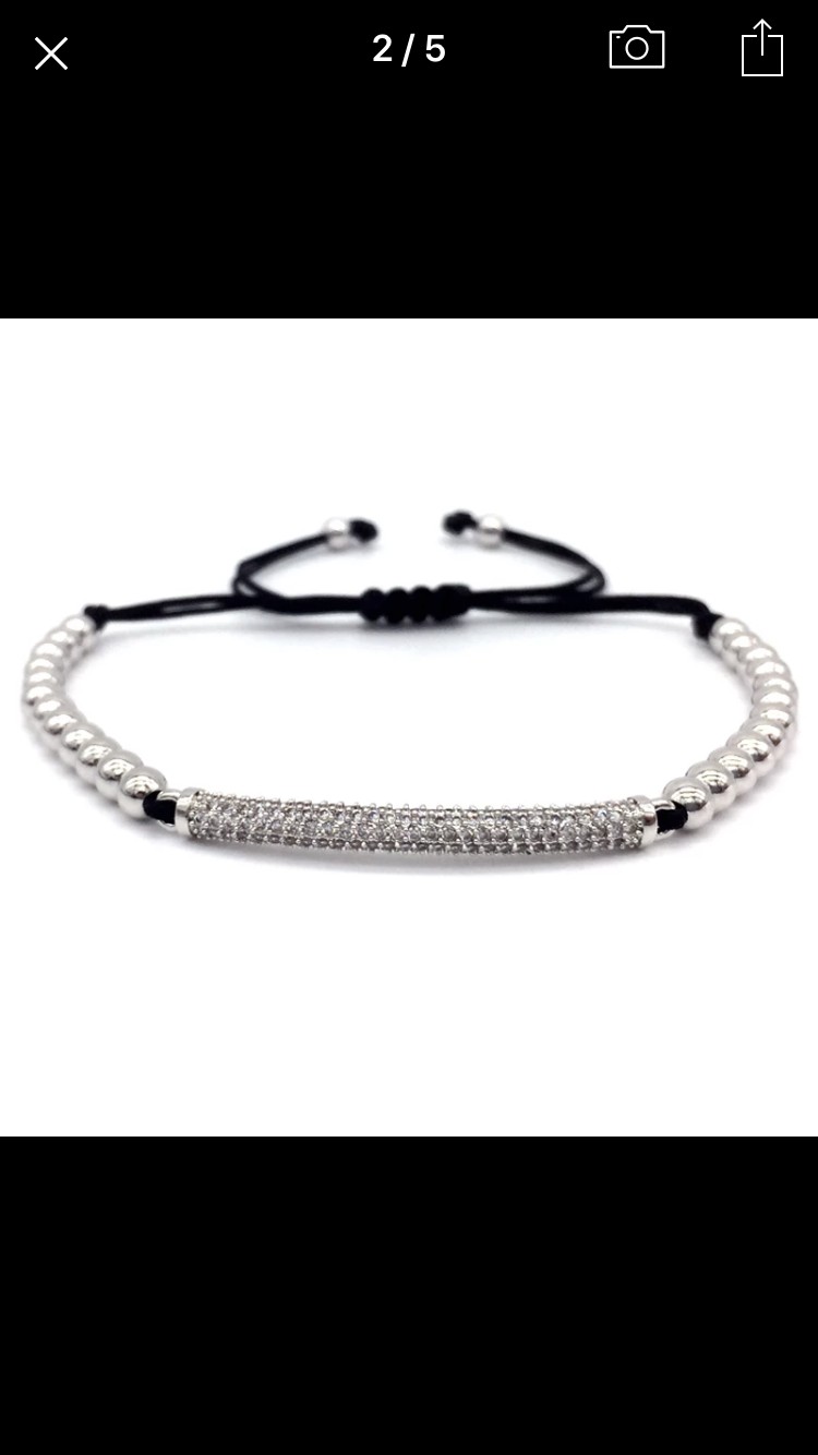 Bracelet Joze Tube paved by zircon with balls in silver – Bracelet Tube pavé de zricons blancs avec boules en argent (sliding clasp)