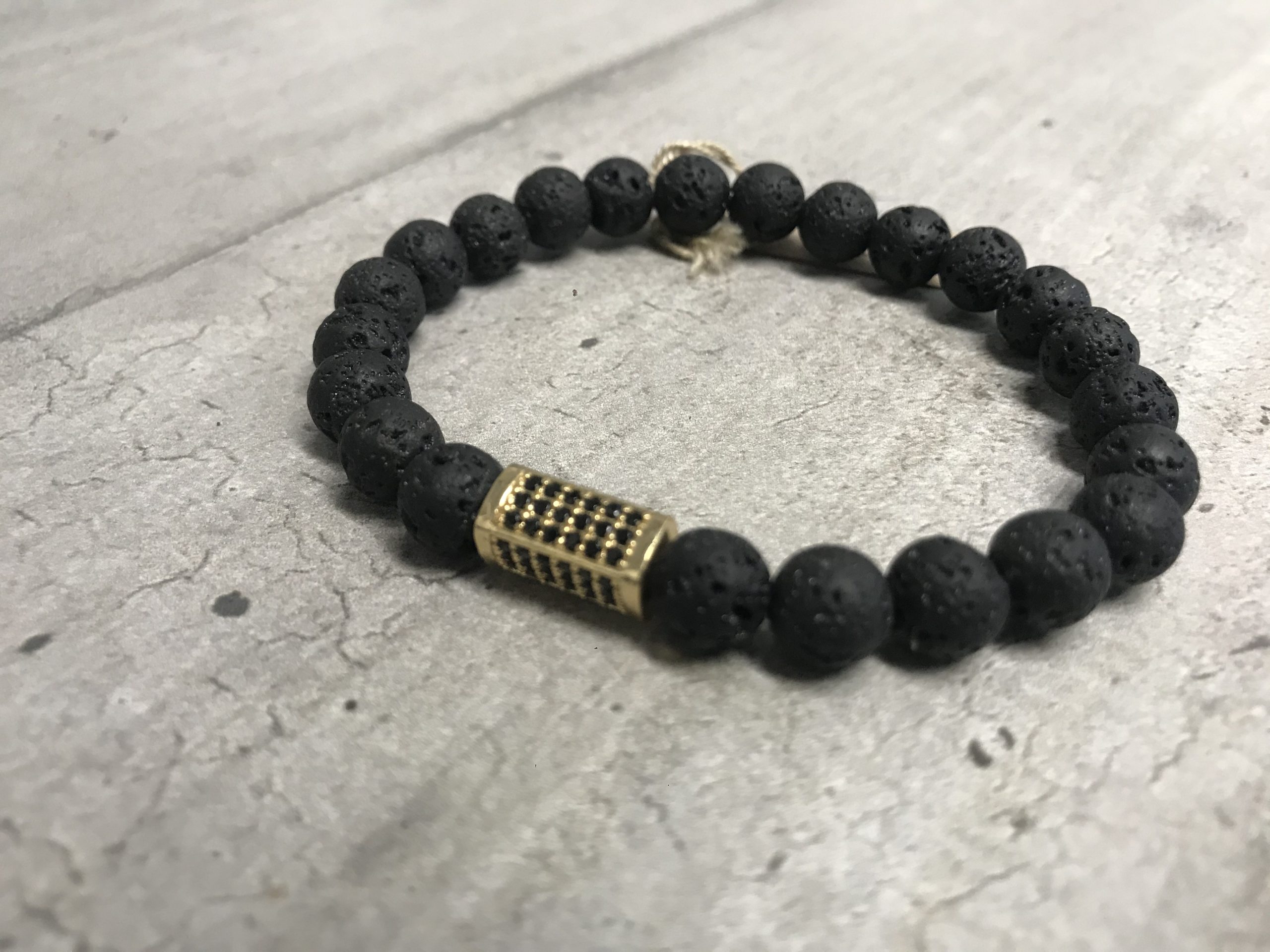 Bracelet Tube paved by black zirconium in yellow gold plated with Black (black lave) stone Balls