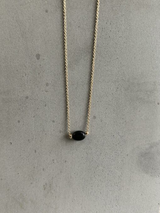 Collier Agate noire ovale en plaque or jaune – Joze Paris (Petit modèle)