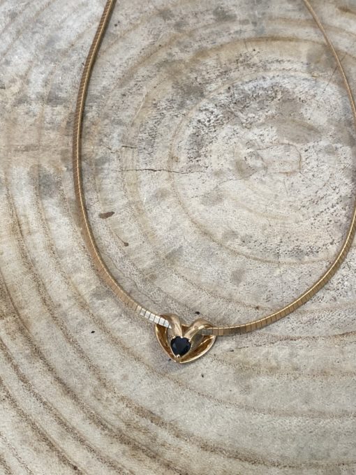 Collier cœur serti d’un zircon noir en plaque or jaune – Joze Paris