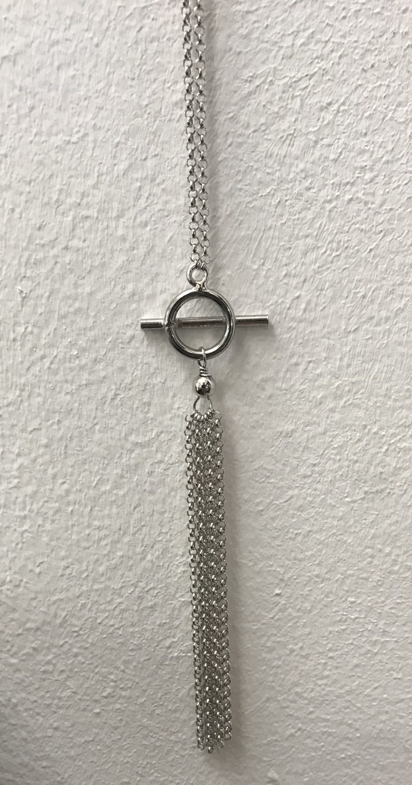 Necklace Joze Circle with a bar with chains pendant in silver – Collier anneau avec bar et chaines en argent